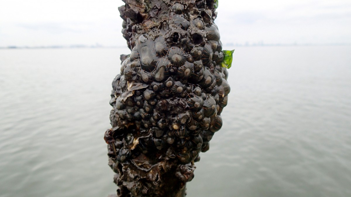 海沿いに行けばどこにでもいるので見つけるのは簡単(真冬は数が少なくなる)。特に垂直護岸にたくさんくっついている。