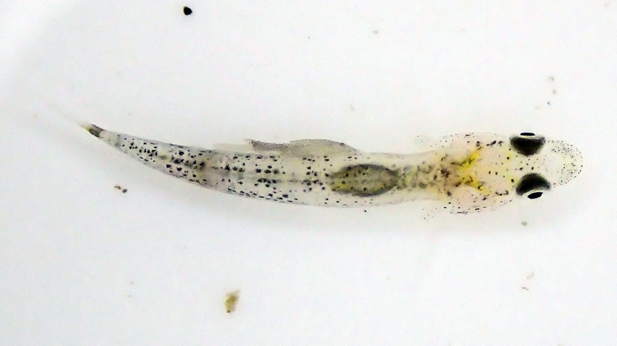 この稚魚以外にも、この日に採集された他の魚にはウオジラミ類が多数付着していた。個人的経験によればこんな風に海が荒れた際、岸近くで採集された魚にはウオジラミ類の寄生率が高い気がする。