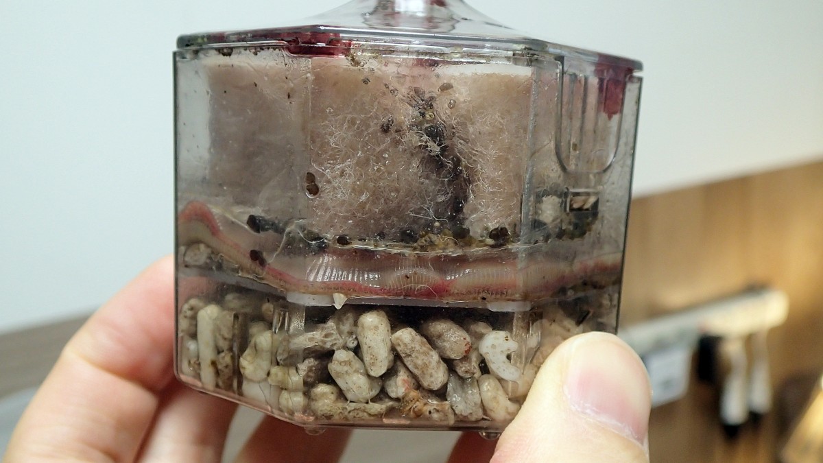 今回採集した個体は、体全体が暗い赤褐色で、体の後端部のみ薄いオレンジ色をしているという見た目だったが、色々と資料を見てみると、もっと体が赤っぽいものやオレンジっぽいものも「イワムシ」として紹介されている。詳しくはわからないが、体色や形態には色々パターンがあるのかもしれない。