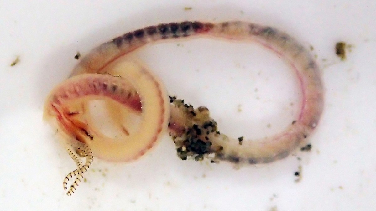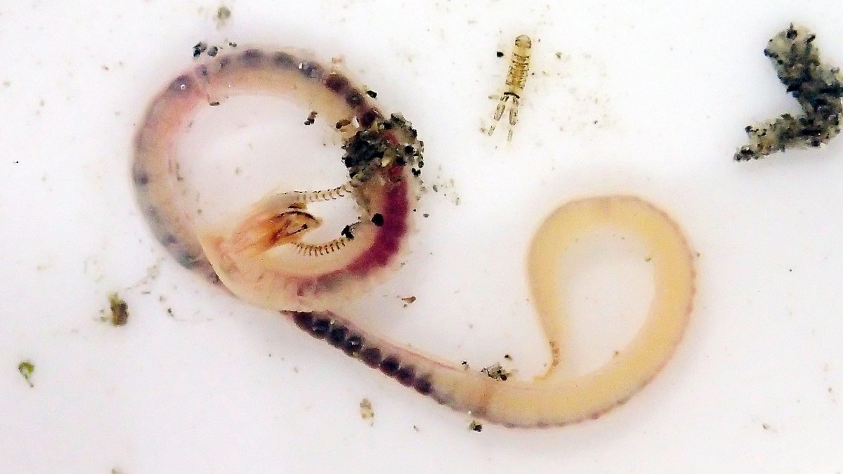 またゴカイ類(多毛類)を正確に同定するには、その道のプロフェッショナルが顕微鏡下で「口の周りにある黒い点の数が~」や「体側にある疣足の先端の形状が~」というのを確認したり、動き方やどのような場所(底質)にいたかなど様々なファクターを総合して判断する必要がある。