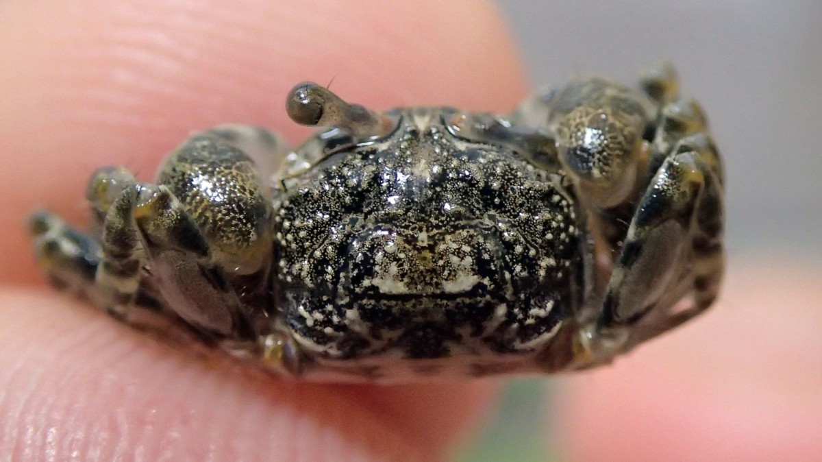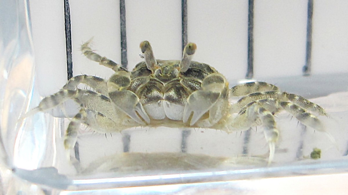 最大でも甲羅の幅が1cmほどの小さなカニ。写真の個体は2024年6月中旬に、浦安市内河川の中流域の川底が硬い砂泥の場所で採集。私の知る限り浦安の海沿いではほとんど見ない。