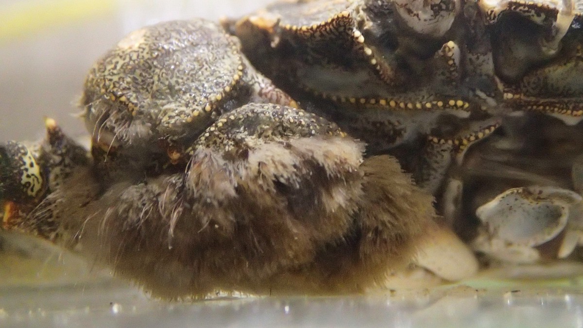 そういえば水槽から出す前日にこのモクズガニさんが抱卵をした(下の写真)。何ともタイミングが悪い…。
