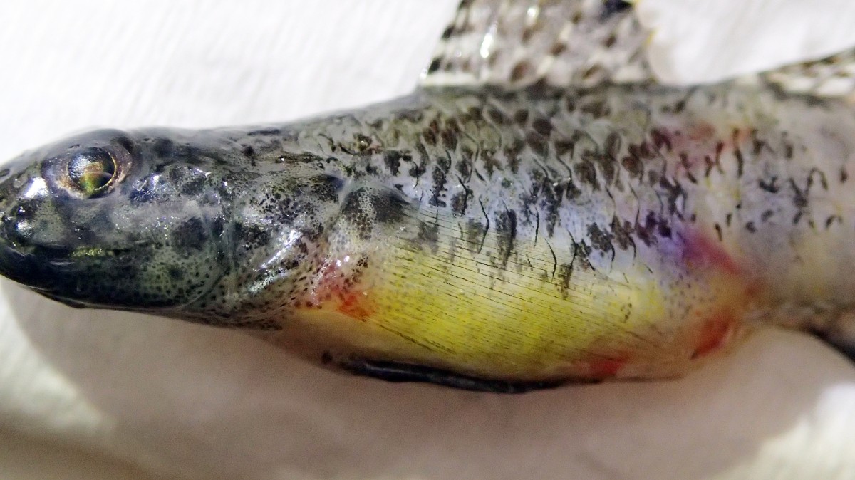 写真を見て分かる通り、これはメスで婚姻色が出た個体。ハゼのことは全然詳しくないのであれだが、メスが鮮やかな婚姻色を呈するなんてちょっと珍しいなと思った(海水魚はオスが派手になる魚が多いよね)。またこの個体の腹が大きく膨れているのは中に卵が詰まっていたからかもしれない(確認するのを忘れた)。