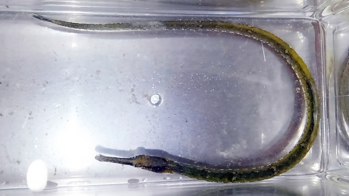 レア度:★★★★★★★★★☆ 脊索動物門 条鰭綱 Syngnathiformes ヨウジウオ科 学名:Syngnathus schlegeli 英名:Seaweed pipefish? よく見られる季節:?
