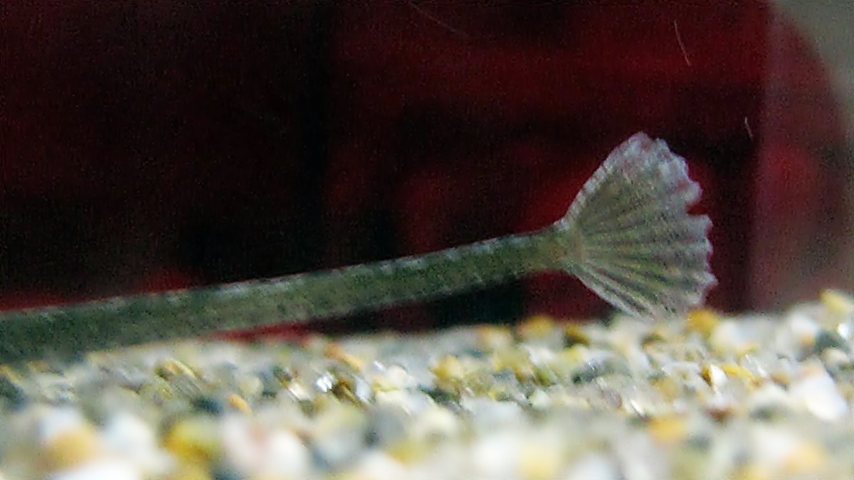肝心のエサだが、やはり配合飼料に慣れさせるのはやや難しいようだ。水槽に入れて3日目で生きたブラインシュリンプを食べ始めたが、その後はブラインシュリンプしか食べない。根気良く慣らしていけば冷凍エサには餌付くらしいが、既にマーレ水槽へ引越しさせてしまったので、生きたブラインシュリンプを与えつつ、しばらく展示したら海へ返てやろうと思う。