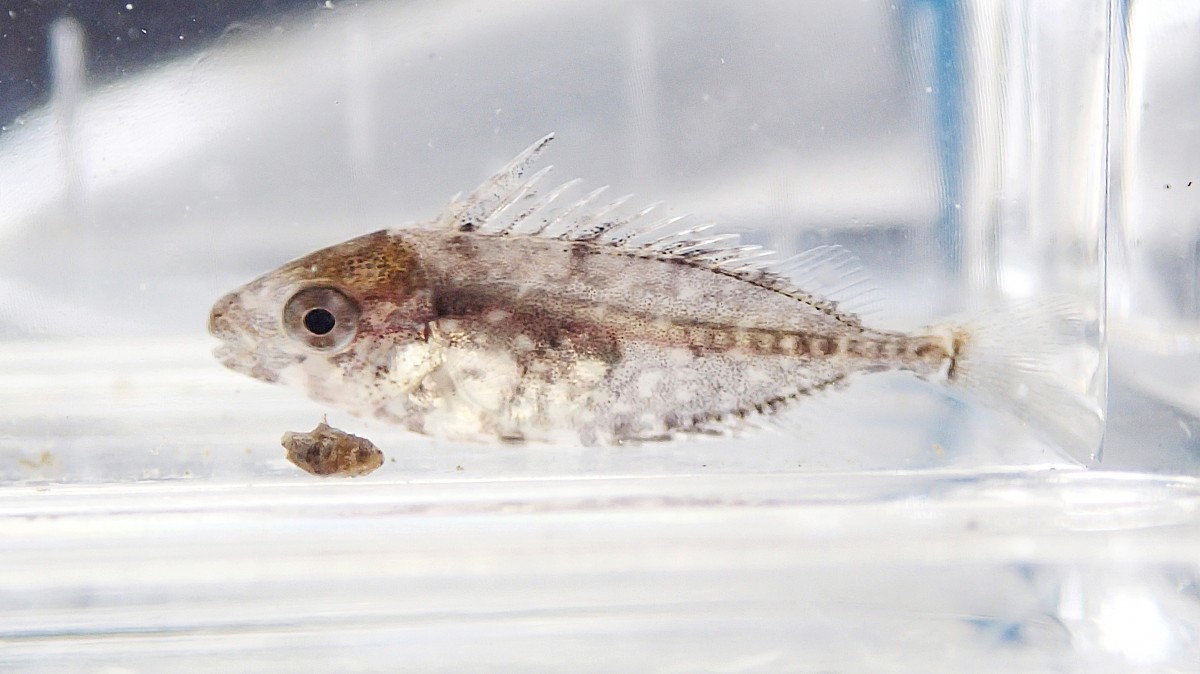 (写真:こちらは2022年8月下旬に三番瀬で採集されたもの。全長約5cm。このくらいのサイズになると、見た目は「アイゴ」の成魚にかなり似てくる)