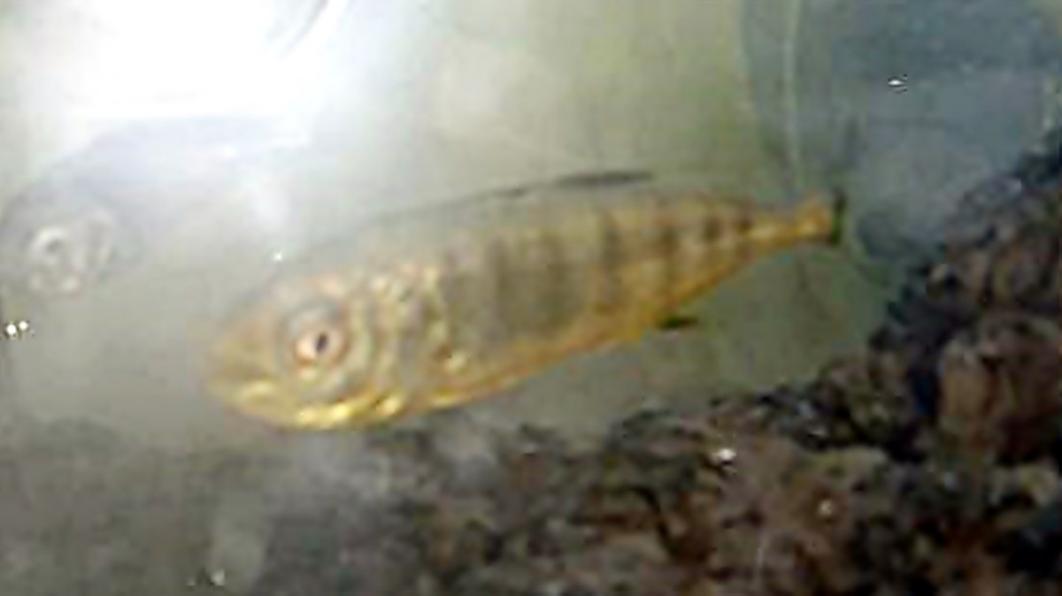 (写真:2018年5月、三番瀬で採集。全長約5cm。知人が採集したブリの幼魚(モジャコ)と思われる魚)