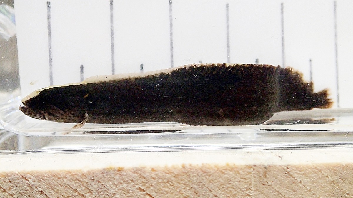 最大で体長30cmほどになるらしい。2022年6月中旬に浦安市内河川の河口で、水中に沈んでいた漁網を網で掬うとその中に潜んでいた。同時期の別の日にも同じ場所で採集できたので、幼魚はこのような場所を好むようだ。