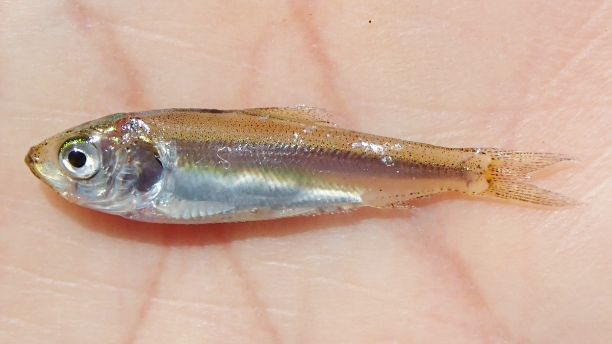 反射的にタモ網を被せると、1匹だけ捕えることができた。なるほど…「サッパ」の幼魚か。