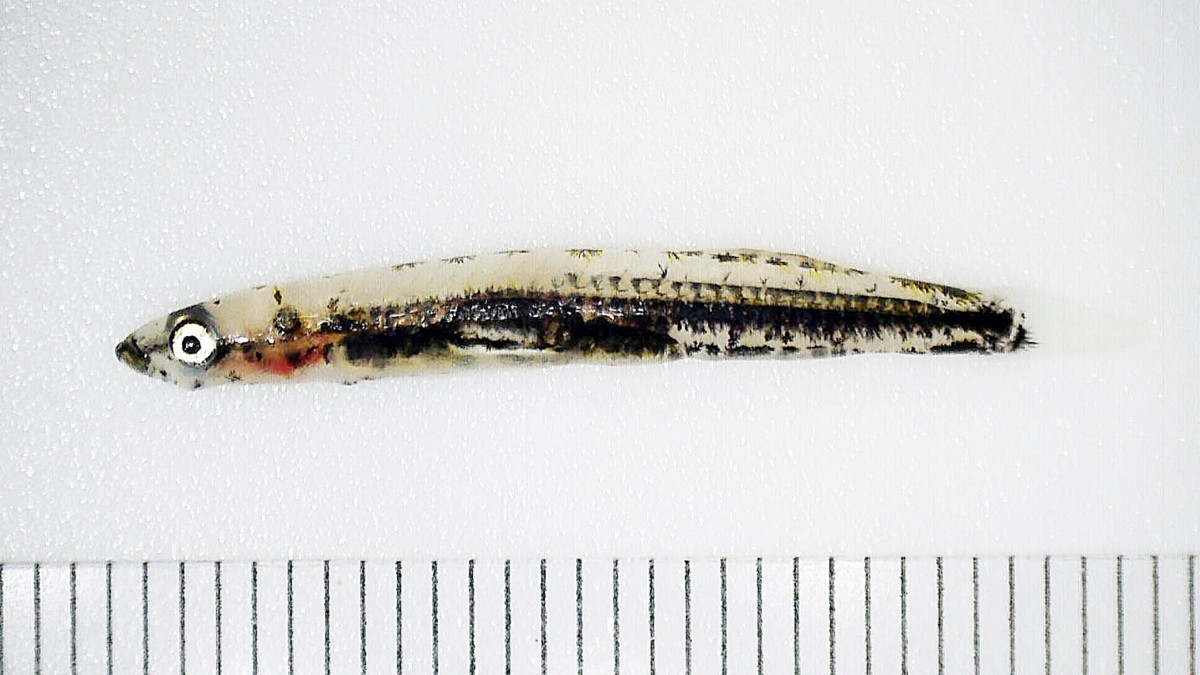 (写真:2019年4月下旬、三番瀬で採集。全長約3cm。目盛りは5mm)