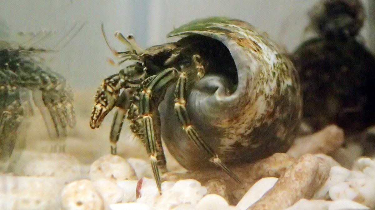 た、たしかに!! 後に貝殻をよく見てみるとどうやら「マガキガイ」っぽい(下の写真)。さらに「マガキガイ」もタテジマヨコバサミもペットショップで扱われている種である。