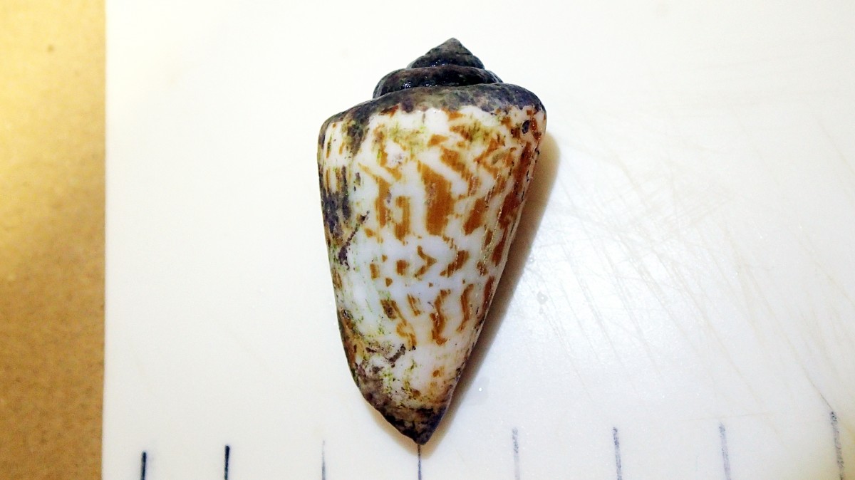 「これ入っている貝殻が「マガキガイ」かイモガイ類に見えます。だとするとこの辺りには生息していない貝なので、誰かが飼育していたのを放棄した個体かもしれません」
