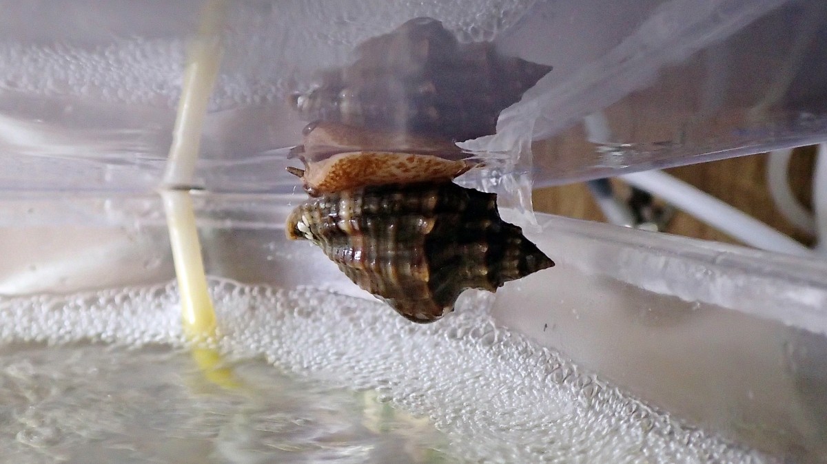 コロモガイは自然下で何をどう食べるのかがほとんど(全く?)分かっていないそうだ。