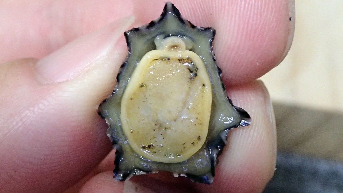 最大で殻長が3cmほどになるようだ。写真のウノアシは2024年6月中旬に三番瀬浦安側の南東のテトラポッド帯で採集したもの。フナムシ類を採集しようとしてテトラポッドをのぞき込んでいると、テトラポッドの表面に見慣れない貝が張り付いている。位置的には満潮時に水面直下となるぐらいの場所だ。